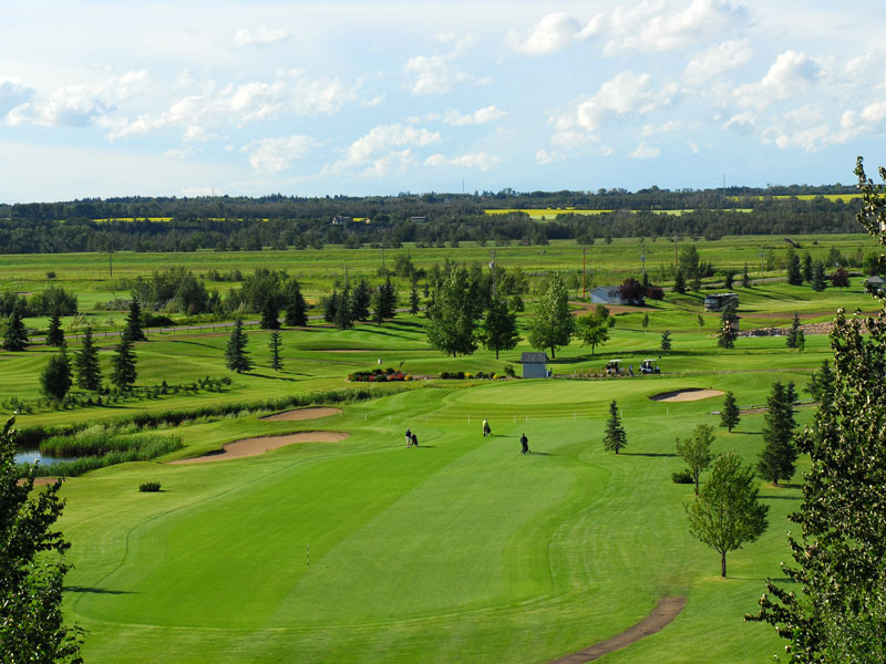 The Legends Golf and Country Club is one of Edmonton’s finest full-facility 27-hole golf courses. Just 25 minutes from downtown, it can be easily found a short 3½ miles north of Highway 16 near Sherwood Park and just 5 minutes off the Henday via Arum road. Offering everything the serious golfer expects, this picturesque course features large, beautiful ponds, gently rolling hills, elevated tees, and combines spectacular views of the North Saskatchewan River valley with a tranquil setting to provide the golfer with an exciting and enjoyable golf experience. Water is in play on many holes. Home to the annual Canadian Open Hickory Championship, an event in which all players compete with hickory-shafted golf clubs, the Legends is rapidly making a name for itself as an innovative, user-friendly golf course. After your round, check out the Legends clubhouse with its panoramic views of the North Saskatchewan River. Its large deck overlooks the 9th green and the 10th tee. The clubhouse is also home to a terrific collection of antique golf clubs, plus displays dedicated to the early history of golf in Edmonton. On the lower level is a large private tournament room, ideal for company or group get-togethers.